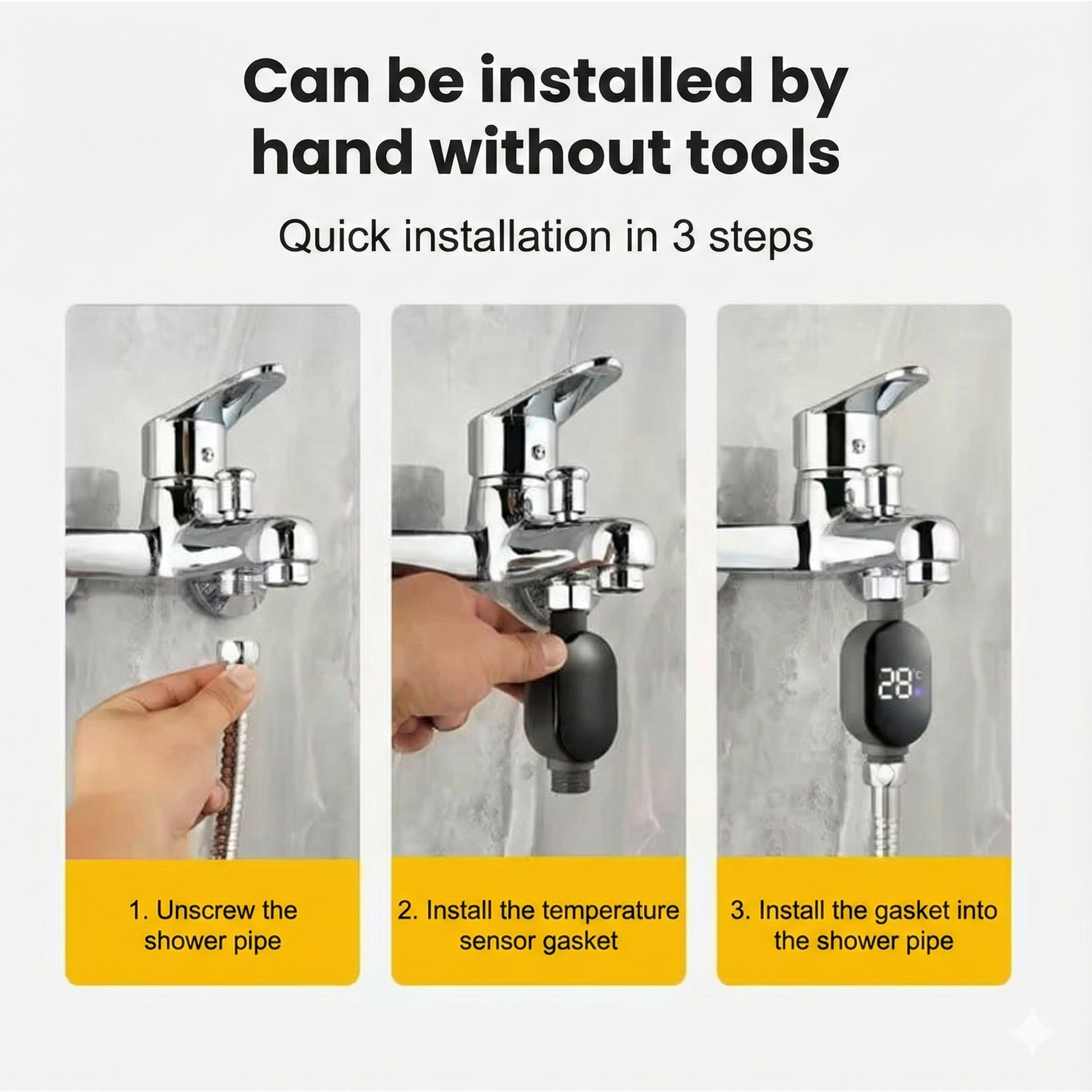Forget calling a plumber or fumbling with toolboxes—this device is designed for hassle-free, tool-less installation. Simply screw it between your shower hose and the showerhead, and you are ready to go in seconds. The unit runs on standard Alkaline batteries for consistent power delivery and features a heat-resistant PC display that remains clear even in steamy conditions. With its universal fit for standard shower hoses, full splash-proof protection, and real-time monitoring capabilities, you can upgrade your shower experience immediately with zero fuss.