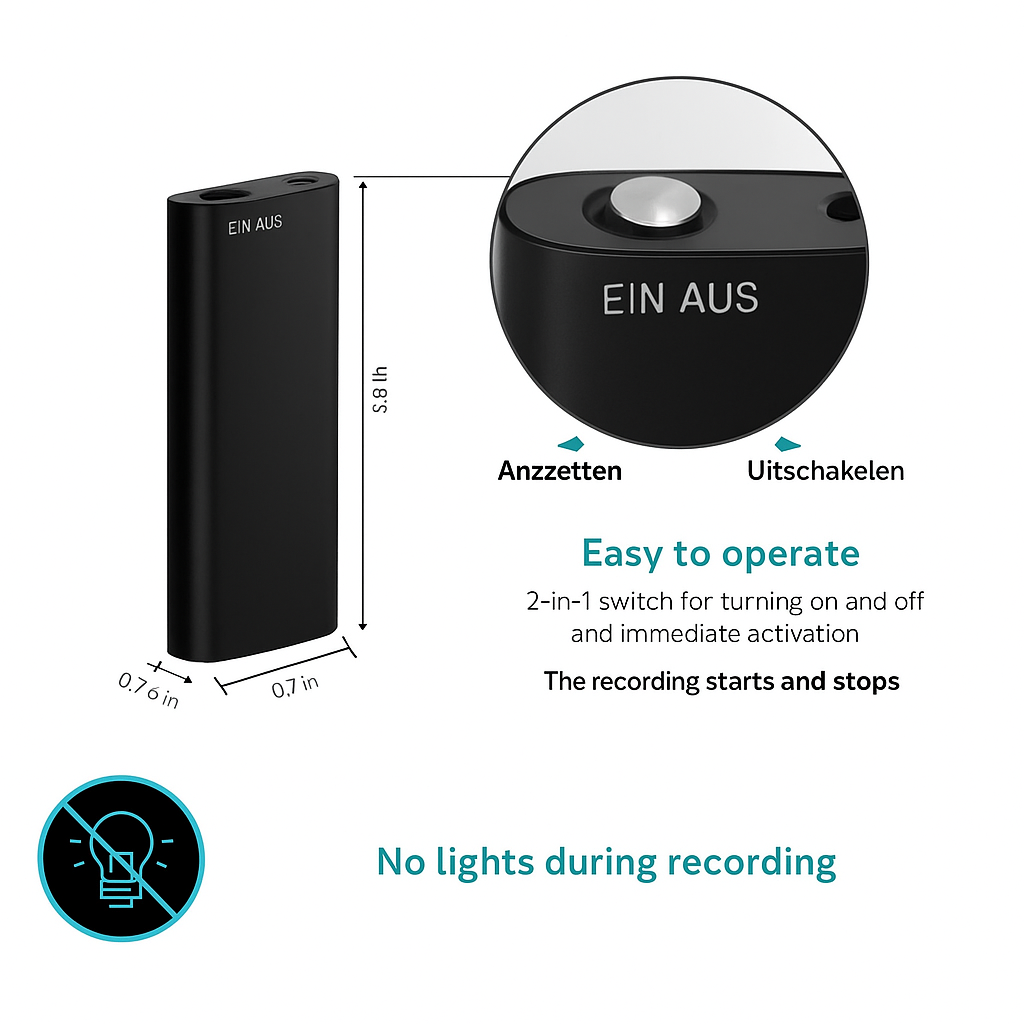 Embrace discretion with a compact design that fits seamlessly into your pocket or handbag. Record private conversations without drawing attention, giving you peace of mind in sensitive situations.